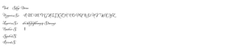 Sofye est une famille de polices de script qui se distingue par ses traits délicats et ses ornements raffinés. Conçue pour Windows, cette police offre une qualité manuscrite avec des lignes fines et des embellissements sophistiqués. Elle se décline en plusieurs variations, allant d'un style léger et éthéré à une version plus audacieuse, permettant une grande polyvalence dans son utilisation. Idéale pour des invitations, du branding ou des emballages, Sofye ajoute une touche de charme vintage à tout projet.